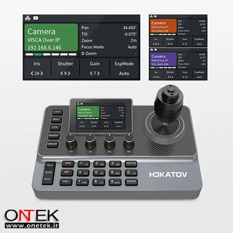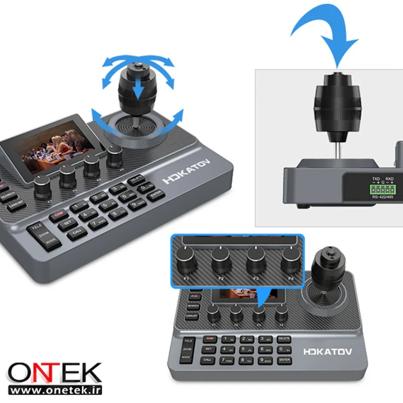 کنترلر دوربین کاتو ویژن مدل KC10 امکان کنترل انواع دوربین را بر بستر شبکه و سریال فراهم کرده و از انواع پروتکل کنترل دوربین پشتیبانی میکند، دارای نمایشگر 3 اینچی رنگی با تنظیمات و کاربری آسان میباشد، جوی استیک دستگاه بسیار دقیق و روان بوده و دستگاه دارای کلیدهای قابل سفارشی سازی میباشد، امکان نمایش تصویر دوربینهای بر بستر شبکه روی نمایشگر دستگاه وجود دارد.